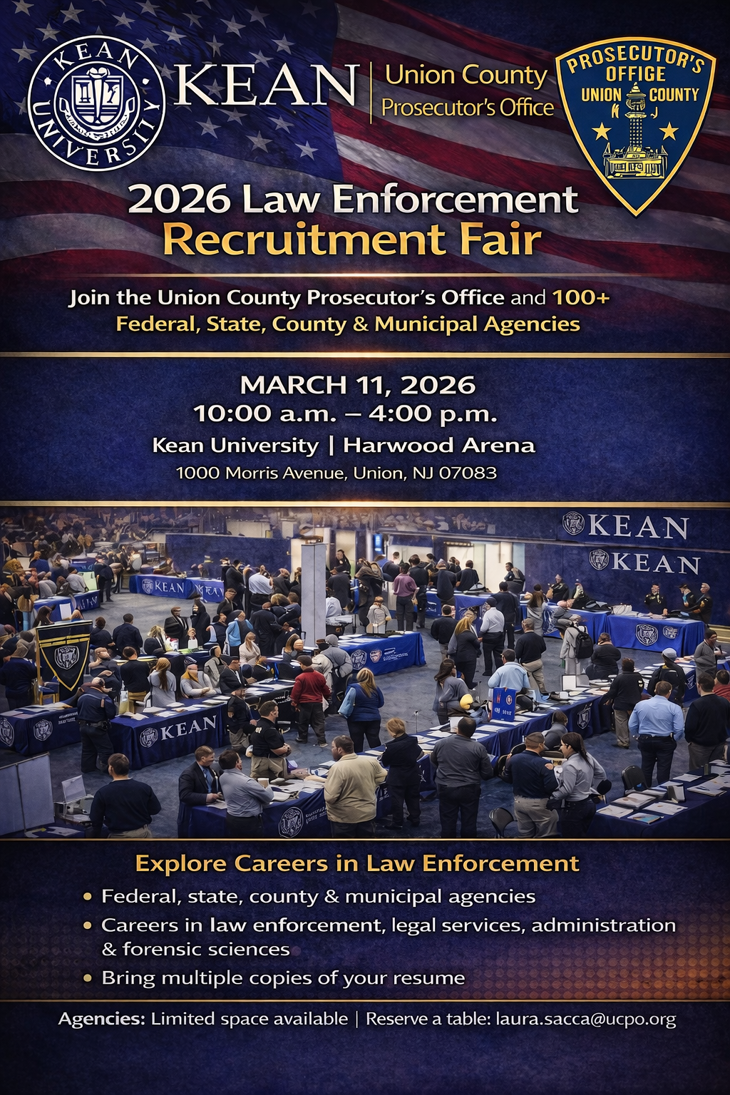 The event will take place from 10 a.m. to 4 p.m. at the Harwood Arena located at Kean University in Union. This fair aims to connect job seekers with opportunities in law enforcement, legal practice, forensics, and public administration.