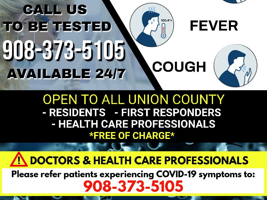 Beginning today, Union County residents, as well as all first responders and health workers working in the county regardless of residence, can report symptoms and schedule testing by calling 908-373-5105.