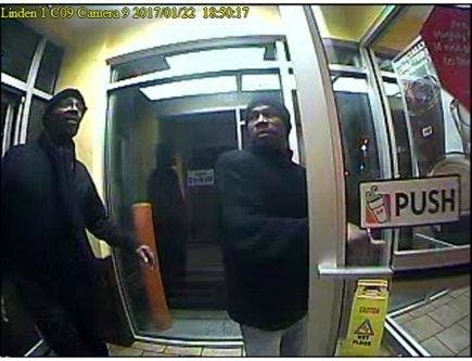 LINDEN, NJ — Linden Police are asking the public for help in identifying these two alleged armed robbers who held up a Dunkin Donuts in January. On Sunday, Jan. 22 at approximately 6:50 p.m. two men entered the Dunkin Donuts at 126 E. Edgar Rd on foot from Woodlawn Avenue together. They demanded money from the clerk while one of the men pulled out a handgun, police reported.