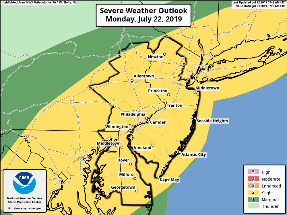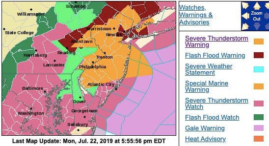 - Every area of New Jersey was at risk of flooding and thunderstorms, but the worst of it could happen in Central and South Jersey.