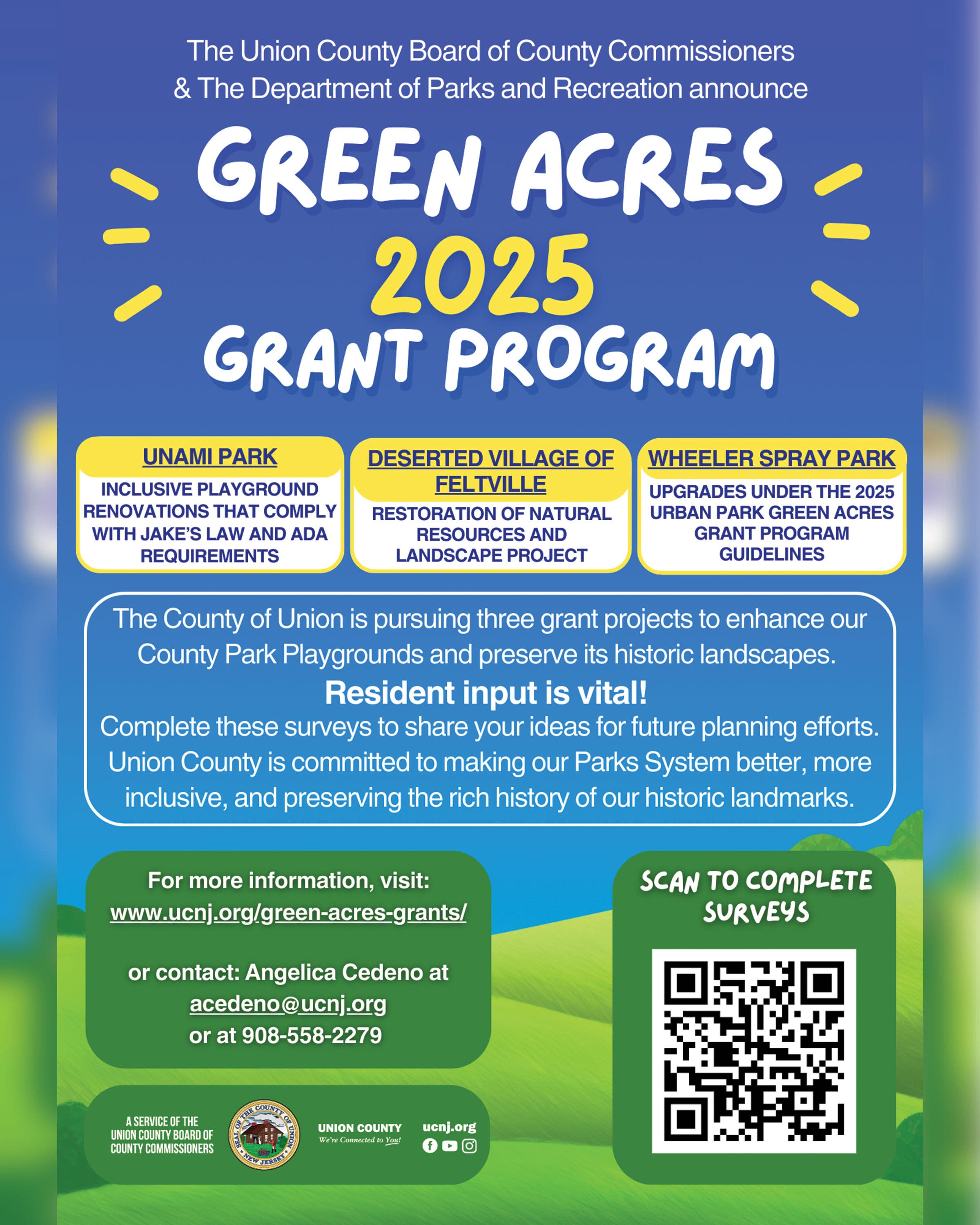 To ensure these projects reflect the needs and desires of our residents, Union County is launching a community outreach program. Residents are encouraged to participate by completing surveys available at ucnj.org/green-acres-grants. This website will also provide regular updates on each project as they progress, offering an opportunity for the community to stay informed and engaged.