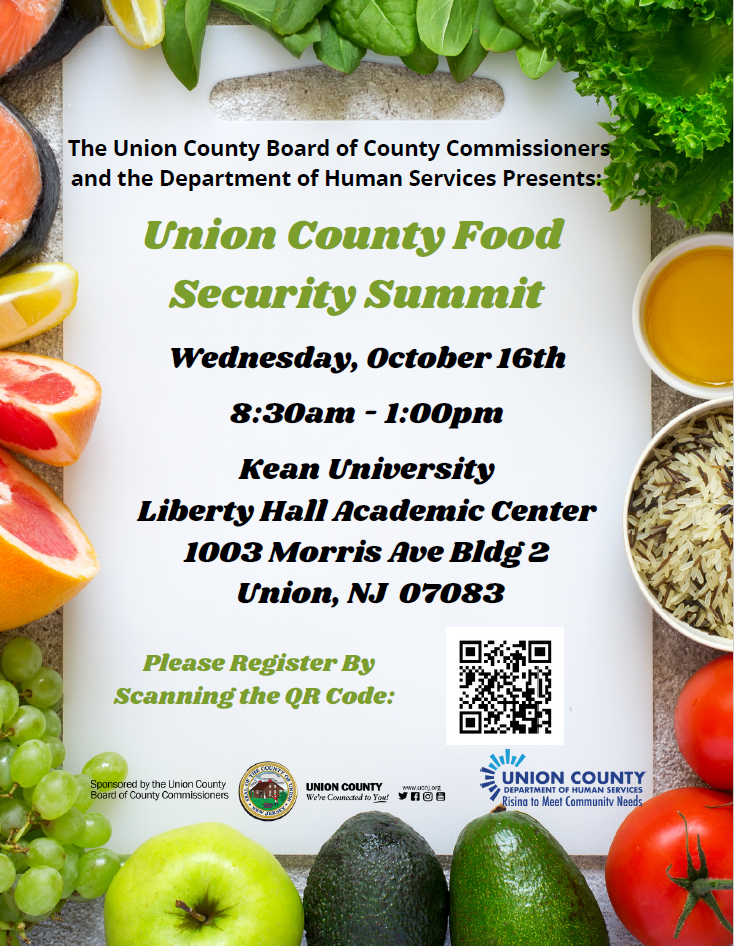 UNION COUNTY, NJ — The Union County Board of County Commissioners is proud to announce the first-ever Union County Food Security Summit, which will be held on Wednesday, Oct. 16, at Kean University Liberty Hall Academic Center.