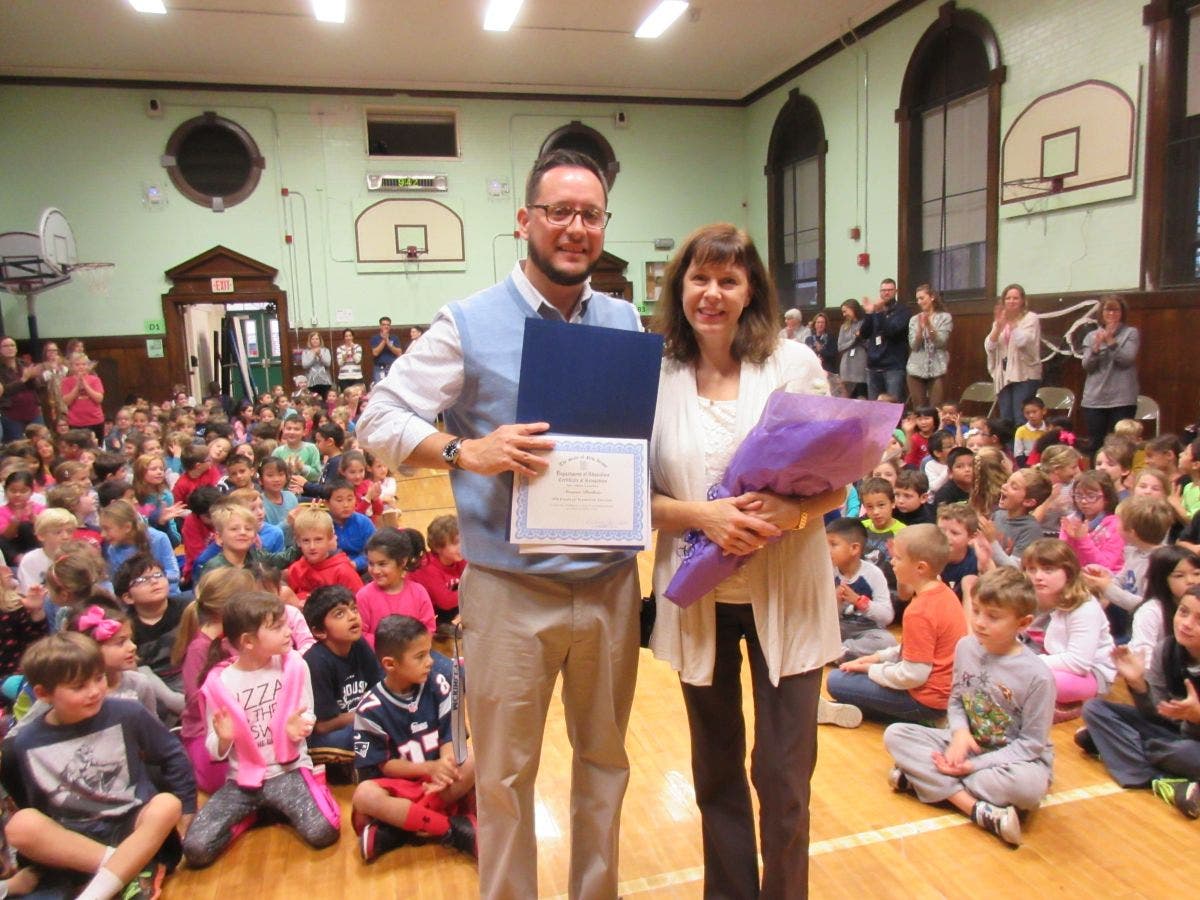 On Nov. 9, at a school-wide assembly, Principal Marc Biunno surprised Bonhote with the announcement and presented her with the certificate from the Department of Education.