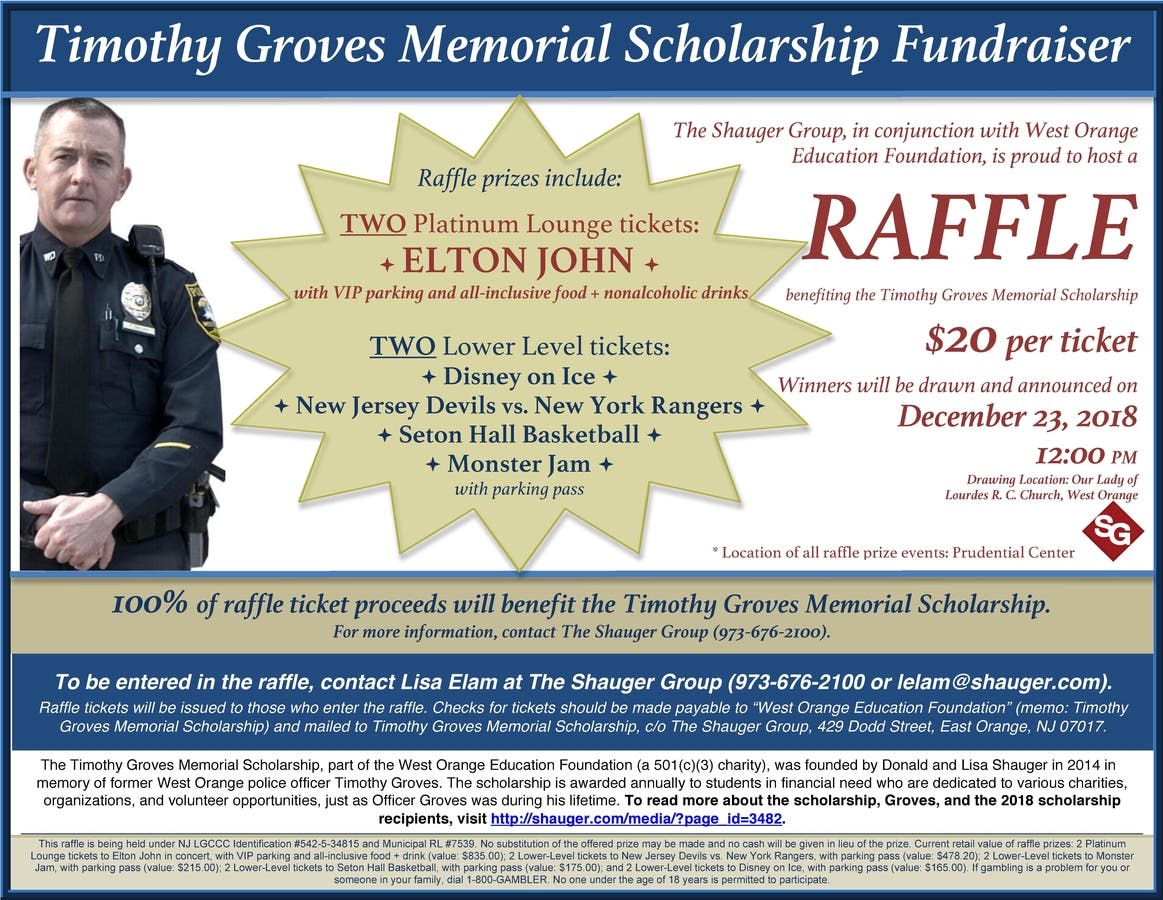 The Shauger Group and West Orange Education Foundation are hosting a raffle to benefit the Timothy Groves Memorial Scholarship.