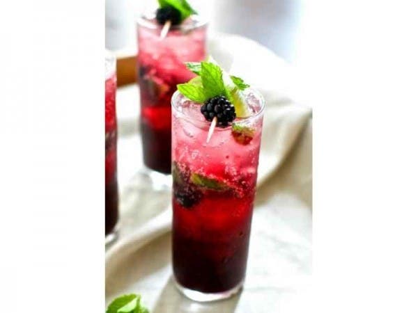 - Sprinkle blackberries in the bottom of four glasses, then muddle or smash them with the back of a fork to extract their juice.