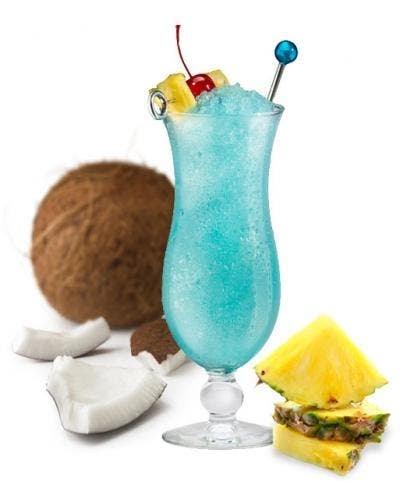 - Rim glass (Optional): For fun, take crushed coconut and roll in blue food coloring, then let dry. Dip rim of glass in rum, then dip into blue coconut.