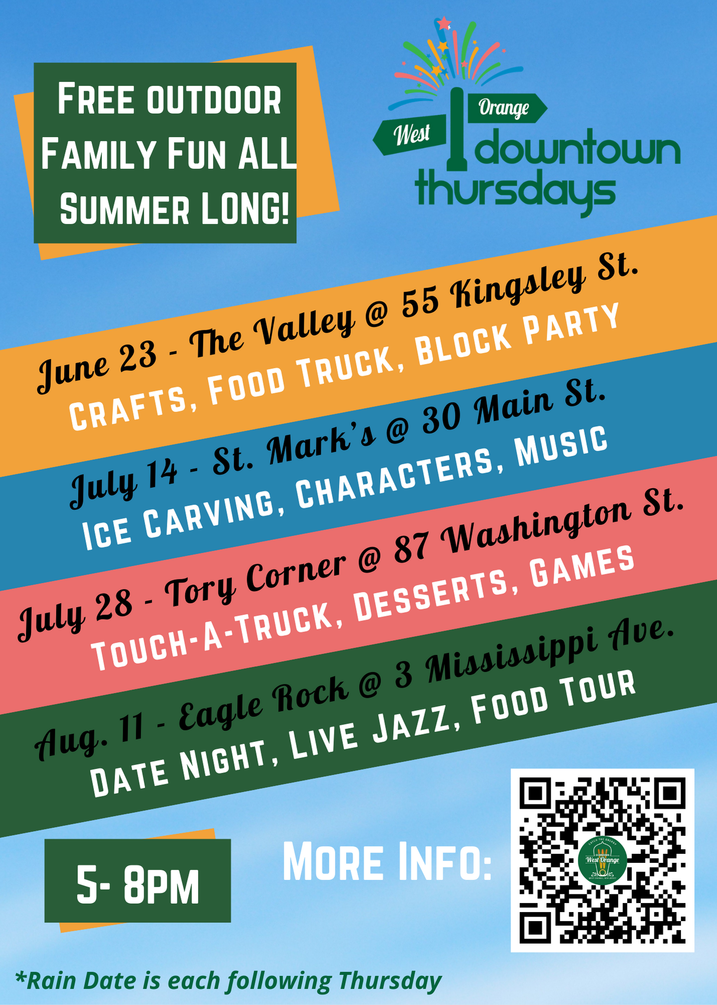 The upcoming four West Orange Downtown Thursday events are outlined below: