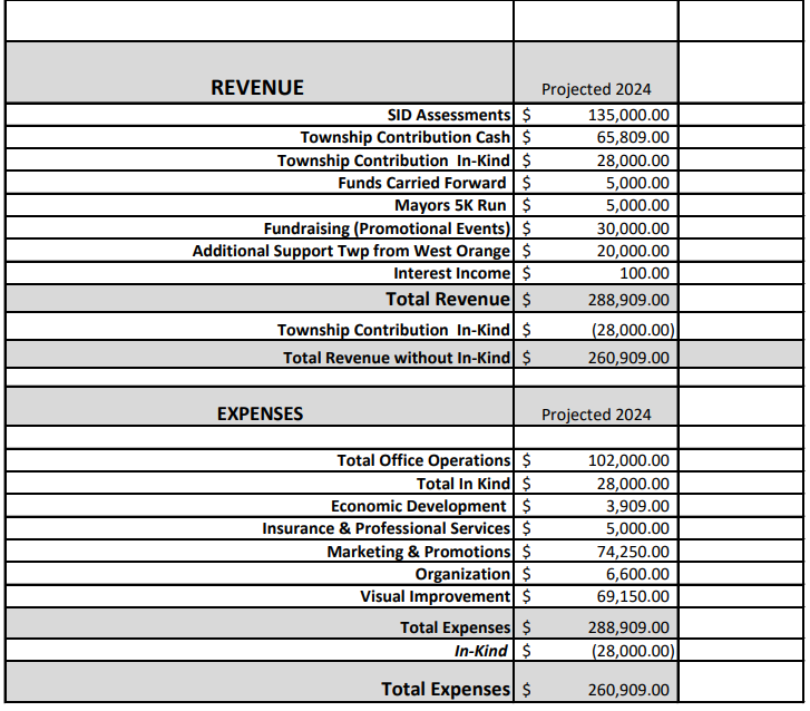WEST ORANGE, NJ — The Downtown West Orange Alliance presented its proposed 2024 budget to the town council at their meeting this week.