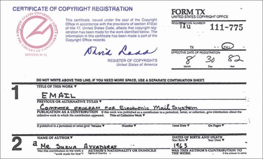 Wednesday marks the 35th anniversary that Ayyadurai received the first U.S. copyright for "Email - Computer Program for Electronic Mail System," which is based on a system that the rock and roll scientist-turned senatorial candidate invented in 1978 as a 14-year-old working at the University of Medicine and Dentistry of New Jersey in Newark.