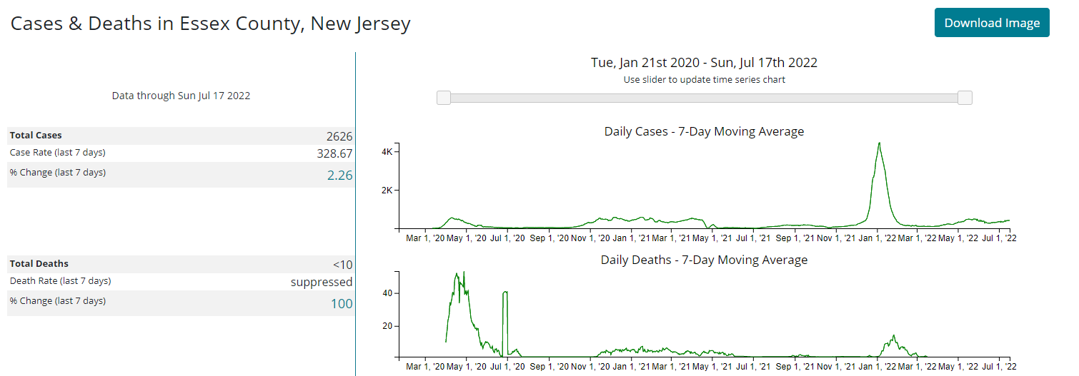 Essex County has been releasing daily COVID-19 case and death counts for each township since the spring of 2020, including West Orange. County officials have noted that their numbers may not match municipal or state totals, and that cases are sometimes reassigned to a different location after an investigation. Essex County officials have also noted that ongoing data cleaning has taken place in their reporting system to "remove duplicate cases or errors," which may lower case/death totals.