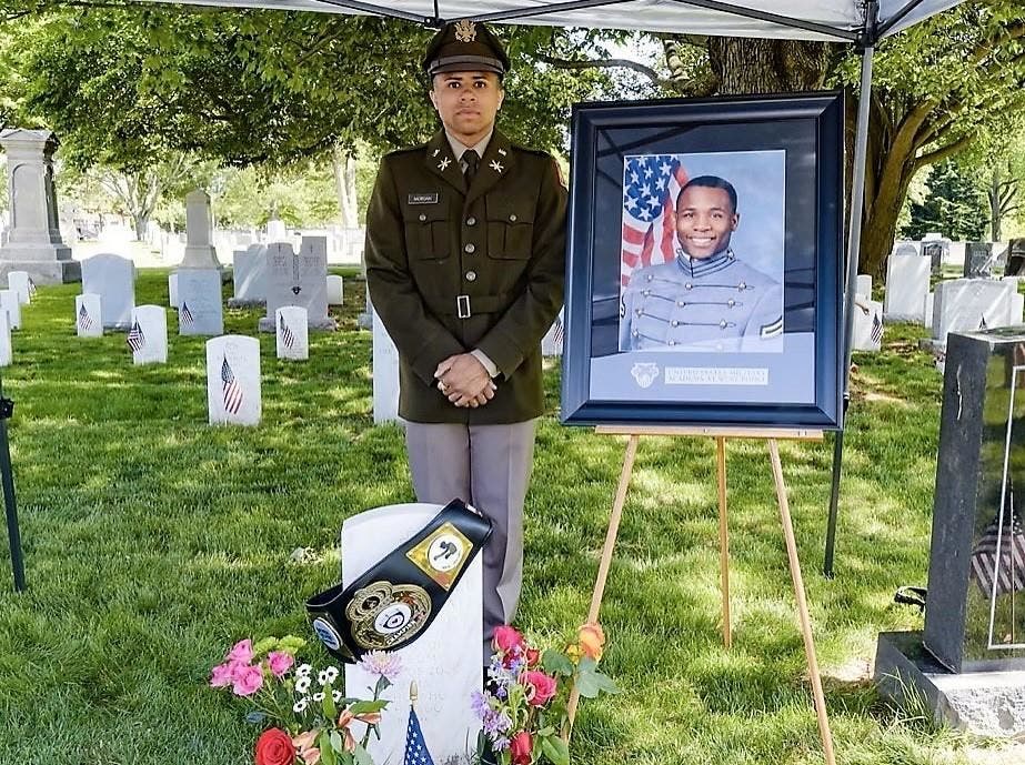 Morgan was commissioned as a Second Lieutenant in the United States Army by his uncle at the gravesite of his brother Chris.