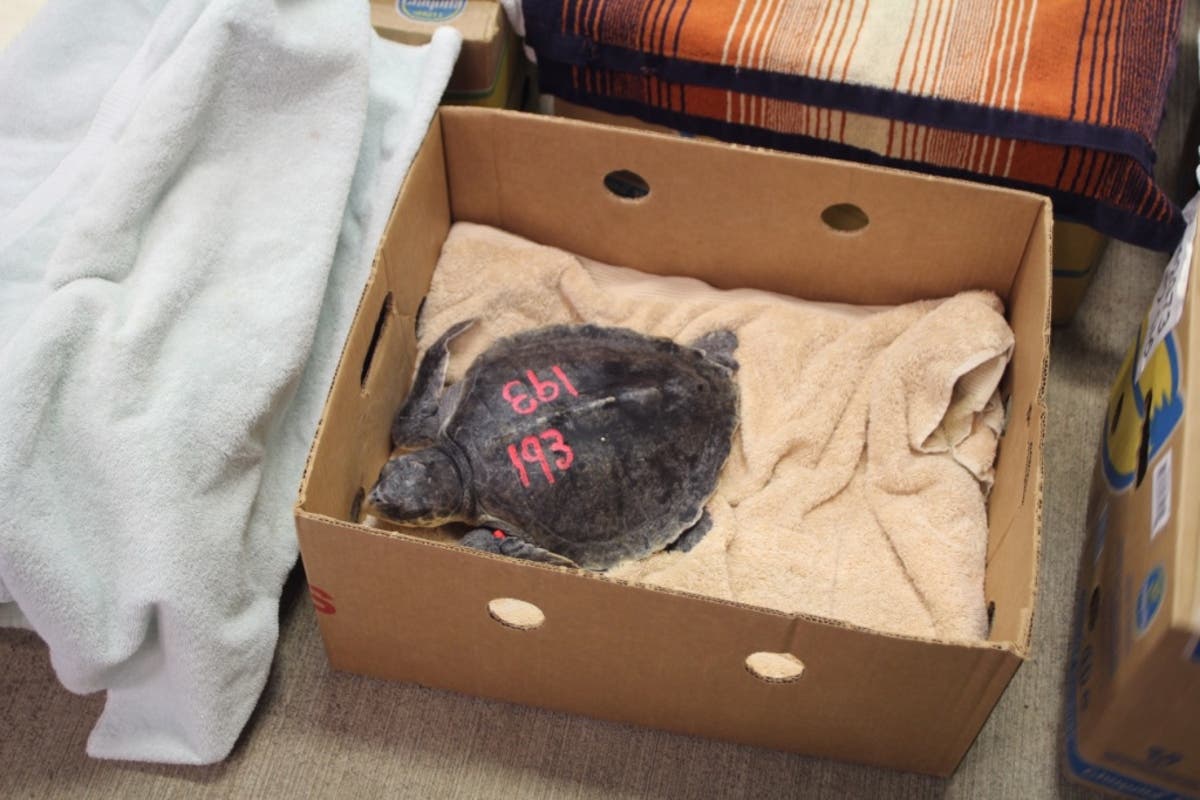 “On the morning of December 14, STR’s staff were caring for five sick and injures sea turtles when they received an urgent call. NOAA’s Northeast Region Coordinator called asking STR to immediately take 15 endangered Kemp’s Ridley sea turtles that had been traveling to a hospital in Pennsylvania from Massachusetts. The turtles were to be transported the first leg of the trip with NOAA staff and the second leg would be carried out by the Pennsylvania crew. However, prior to the exchange, the Pennsylvania crew was in a car accident that left them unable to receive the turtles. Luckily nobody was severely injured, but the NOAA team and turtles found themselves with no place to go.”
