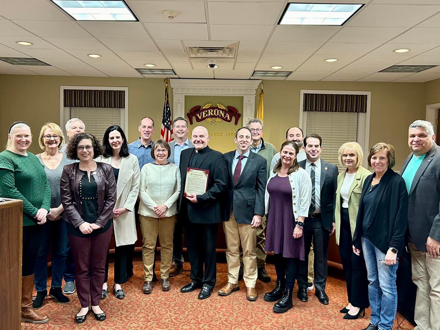 “It was good seeing old faces mingling with new parishioners,” said the Rev. Peter Wehrle, pastor at Our Lady of the Lake, who accepted a commendation acknowledging the church’s 100th anniversary from Verona Mayor Christopher Tamburro earlier this year.