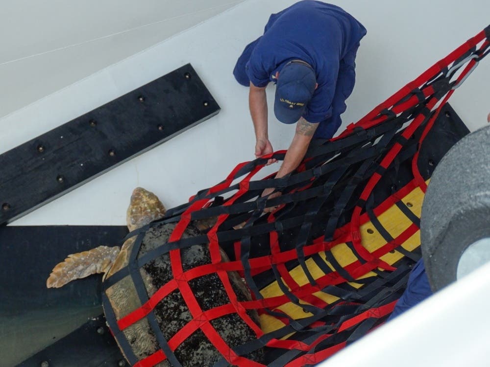 “Members of MERR and Sea Turtle Recovery knew right away that the turtle was sick because it was floating,” said Petty Officer 1st Class Christopher Taylor, coxswain aboard the rescue craft. “They told us that if turtles can’t dive, they can’t eat, and if we hadn’t helped it, it would have slowly starved to death.”