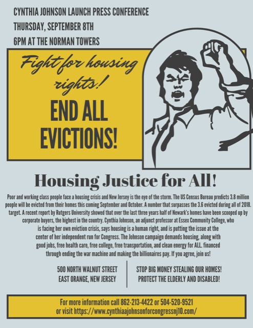 “New Jersey is in the eye of an eviction storm, but my Democratic and Republican opponents offer no protection from the ravages of this capitalist-made calamity,” Johnson said.