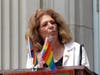 West Orange High School GSA President-Elect Parker Hawley spoke enthusiastically about living in a community where “being your authentic self” – whether trans, bi, queer or gay – was an empowering way to live. Hawley then raised the Pride flag, marking a high point in the annual celebration.