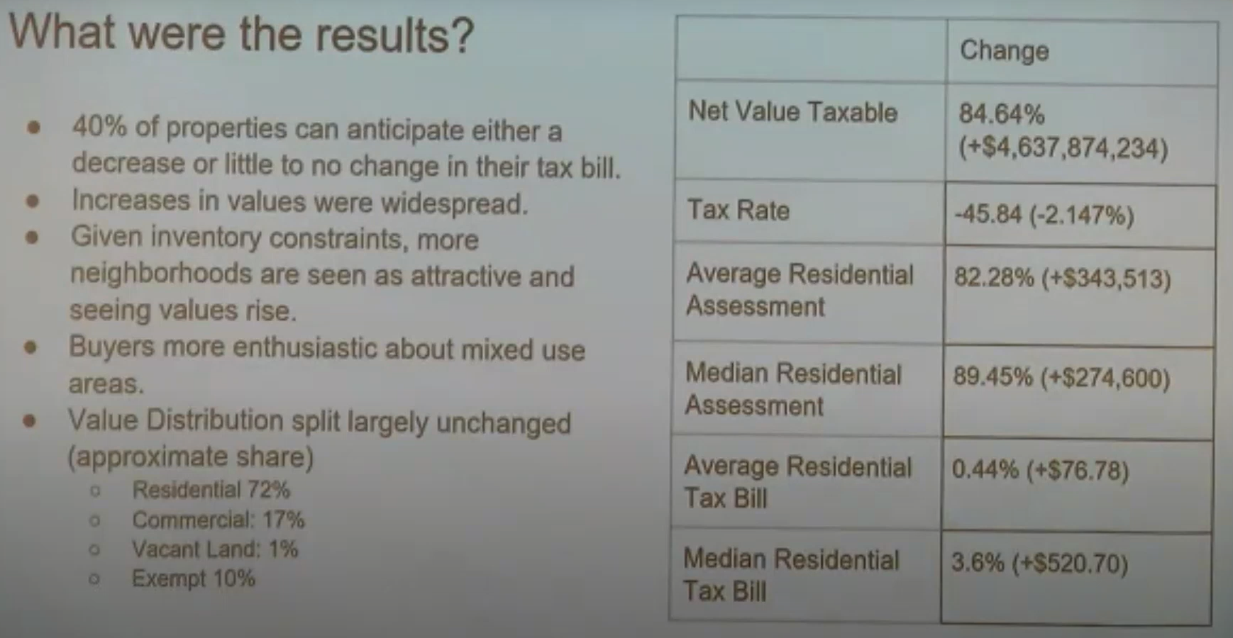 About 40 percent of property owners can expect either a decrease or “little to no change” in their tax bill, Nieman said. As for increases, that’s a little more complicated, he added.