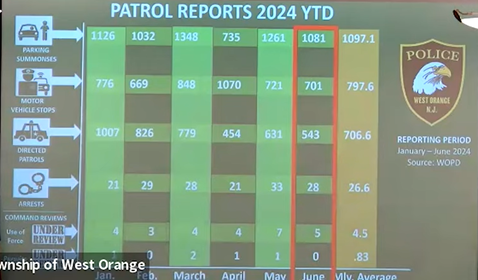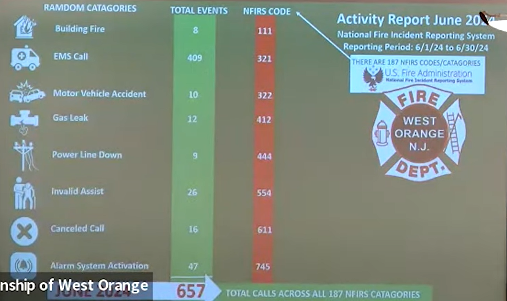 WEST ORANGE, NJ — West Orange officials shared some updated statistics from the police and fire departments at a recent town council meeting.
