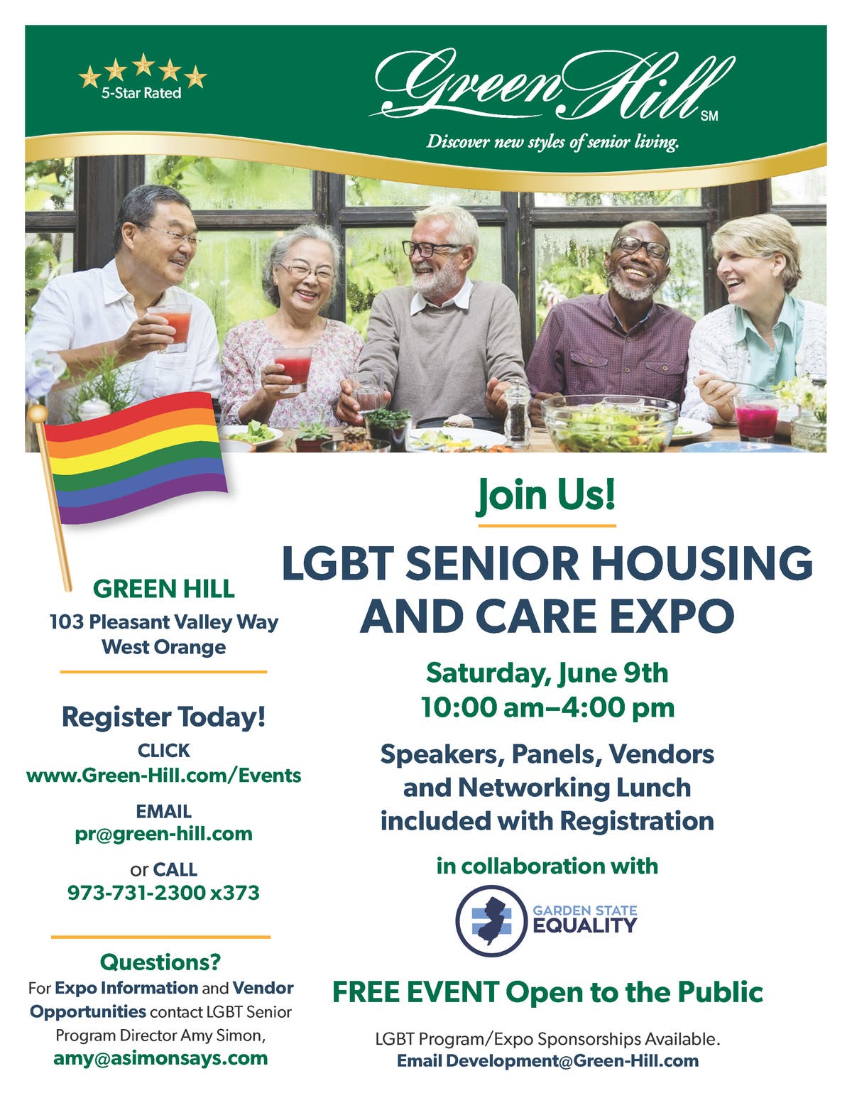 During the expo, which will take place from 10 a.m. to 4 p.m., representatives of Green Hill Inc. will partner with nonprofit advocacy group Garden State Equality to discuss how to create long-term care housing and services for LGBT seniors of all economic levels, race, religions and cultures.