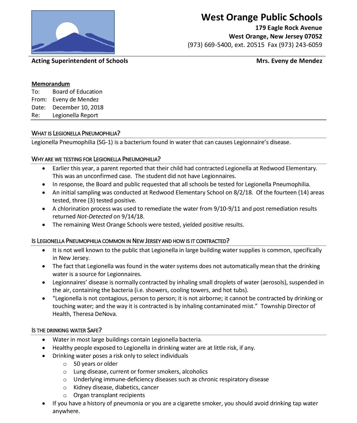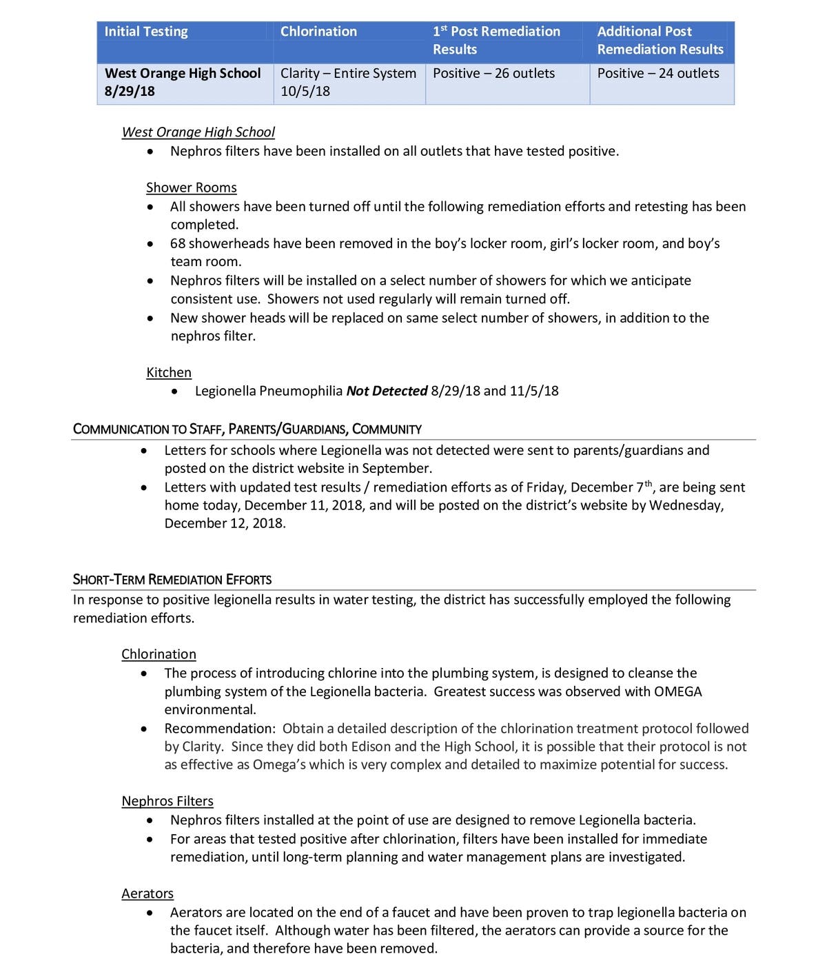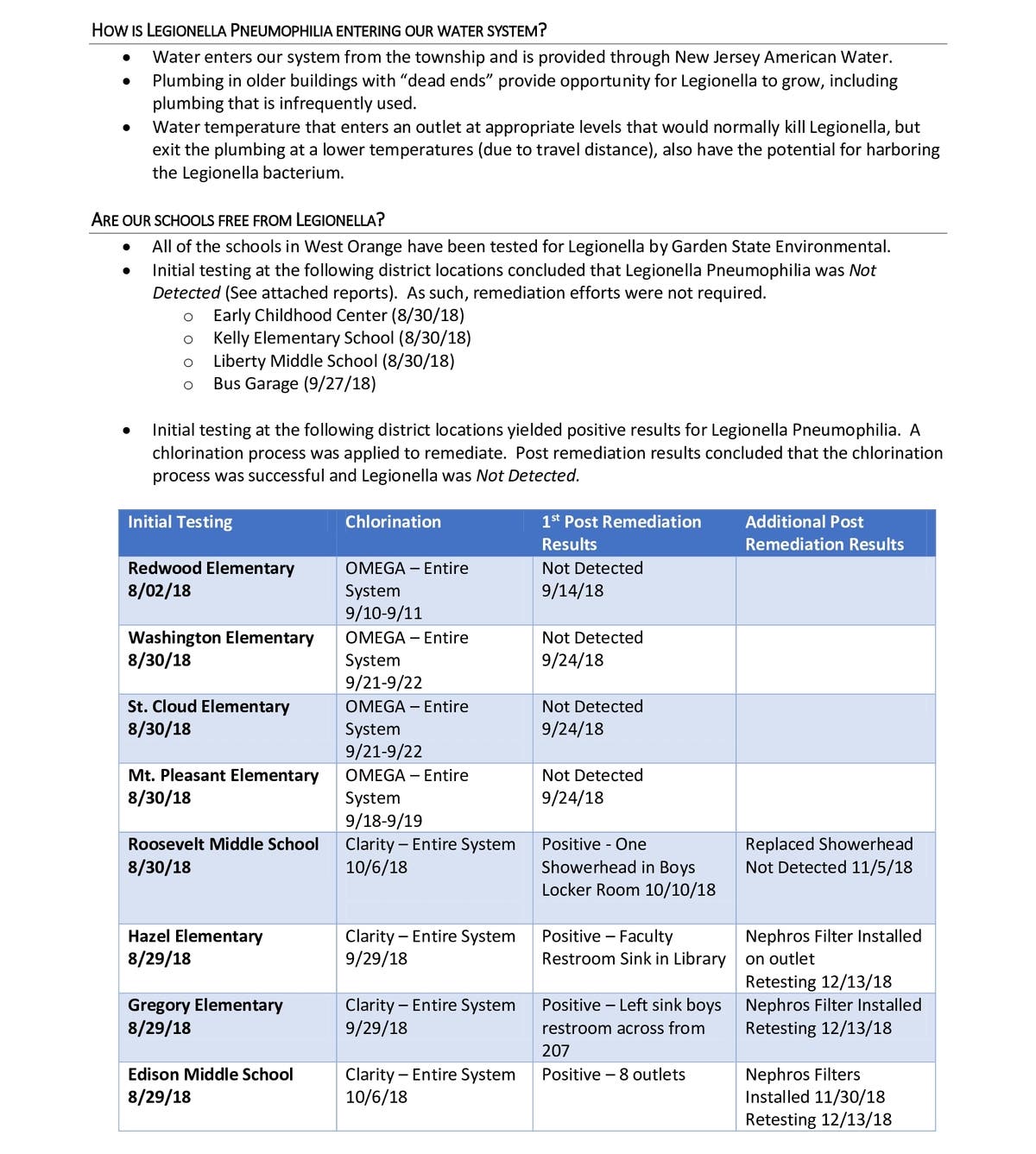 - See related article: Legionella Found At All But 3 West Orange Schools