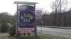 The bar area is festooned with neon signs for Budweiser and Miller Light, and in the dining room a huge car hood with the Miller Light insignia on the front is suspended from the ceiling.