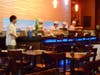 Booths line the right wall of the building, with tables in the center. Next to the sushi bar – where four chefs were cooking in front of customers – sits a large fish tank. The dim lighting and slow music compliment each other for an overall mellow atmosphere, perfect for a nice date or family dinner out.
