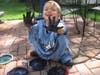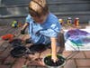 - Fun with fingerpaint. It's a perfect backyard art activity. Just throw on one of your hubby's old shirts and use ready-made fingerpaint. Better yet, you can make your own. We used old pizza boxes waiting to be recycled as our "canvas" since we love to mix and layer our paints.