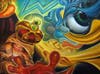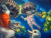 The surrealist and highly stylized paintings of artist Gerd Dagne are as fascinating as they are compelling. Colorful, tension-riddled scenes, and a strong use of line and form are all hallmarks of Dagne’s unique style, which is reflective of the influences of the sixties Pop culture, seventies psychedelic art, and his strong connection to consumer branding. Dagne describes his work as a release of the unconscious, a delving deep into the inner world to cultivate awareness and understanding of the experience of the self and of the human race as a whole.