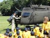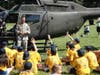 Friday, the last day of the program, students got a visit from two members of the Army National Guard who arrived by helicopter on the lawn in front of the high school. Warrant Officer Steve Lampe spoke to the first group of students about the helicopter and answered questions.