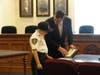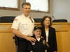 Mayor John Birkner Jr. swore Joseph in before Chief Frank Regino showed him around headquarters and explained his job.