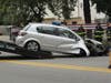 Drivers traveling along Pascack Road were detoured through several side streets while the car was being removed from the roadway.
