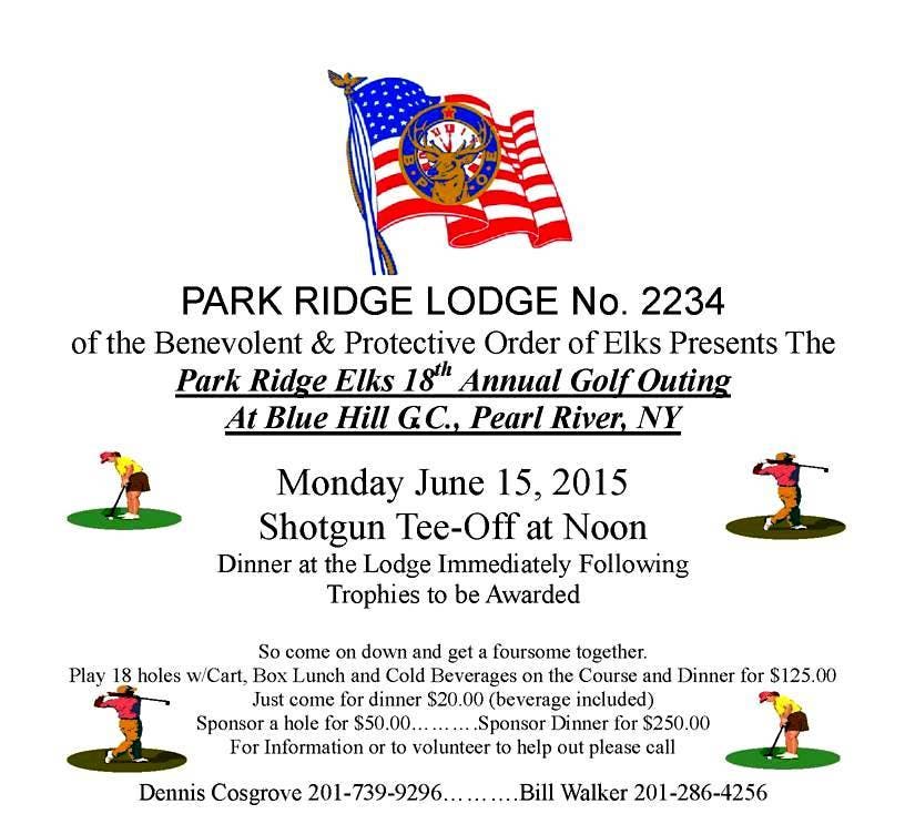 Park Ridge Elks 18th Annual Golf Outing at Blue Hill Golf Course Pearl River, NY - Monday June 15th