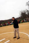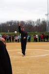Despite wind that gusted 40 mph and temperatures in the 30s, Westwood’s Softball Association opened its season with an exhibition game on Saturday. Along with the introduction of teams and coaches, players, fans and league officials honored long time board member and coach Mike McLaughlin for his years of dedication and service to the league.