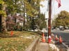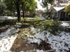 Trees and lawns are littered with storm debris, including downed trees and branches. Many sidewalks are impassable, as are some side streets. Police urge residents who go trick-or-treating Monday to use extreme caution since there are down power lines and trees that will not be cleared before the day is over.