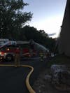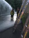 Photos: Firefighters work with hoses and ladders during the department's monthly drill. Images courtesy of the Westwood Fire Department