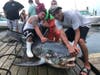 After stopping at Dockside Bait and Tackle in Sewaren, these Staten Island fishermen caught a 510-pound thresher shark Sunday.