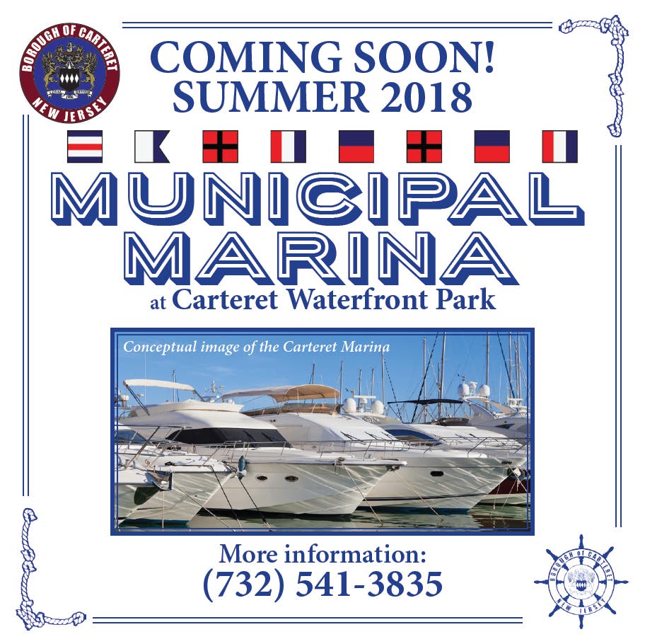 Big changes are coming to Carteret: The Carteret marina, which consists of 200 slips at the Borough’s Waterfront Park, is slated to open this summer. A $13.25 million grant from the Department of Environmental Protection will enable the Borough to construct a boardwalk and river walk along the Arthur Kill Channel.
