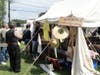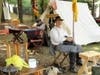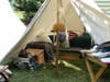 Donovan, seated near his model tent - complete with a camp bed and an old fashioned quilt - had on a resplendent uniform and an old fashion gun tucked in his boot.