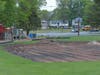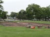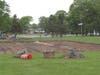 The ground is marked off, the dirt dug up, and the initial outline of the skateboard park are already taking shape.