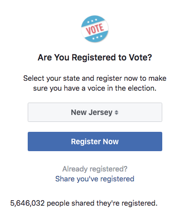 Facebook asked those who had already registered were asked to share it with their friends. The University of Texas - Austin recently found that Facebook was an effective tool in encouraging people to register and go out to vote.