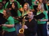 The combined choirs - dressed in matching green and white teeshirts with the "Johnnie Mac Singers" logo - launched into well-known songs reworked to invoke the names of McCormac and other council members and their November election victory.