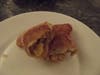 The Kurry Puff is pretty much a turnover or knish filled with chicken, potato, onion, and curry powder. It is served with a sweet and sour cucumber sauce that is really good, but unnecessary. The Kurry Puff does not need a condiment. It’s perfect just the way it is. The pastry is flaky and melts into the buttery texture of the potato. This puff is good because of its different textures. What really hits you when you first bite into it is the flavor of the curry powder. It’s not spicy; it actually has a sweet, nutty flavor. It tastes a lot like nutmeg.