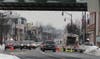 Steam rising from water hitting underground electrical lines closed Pearl St. this afternoon.