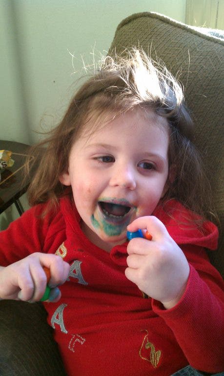 I wonder what would happen if I took a drive into PA with my kids and tried to have lunch there. “Sorry, ma’am. This one is okay, but the smaller one? She’s got to wait outside.” Ha. Little do they know, Kimmie is the neat one.