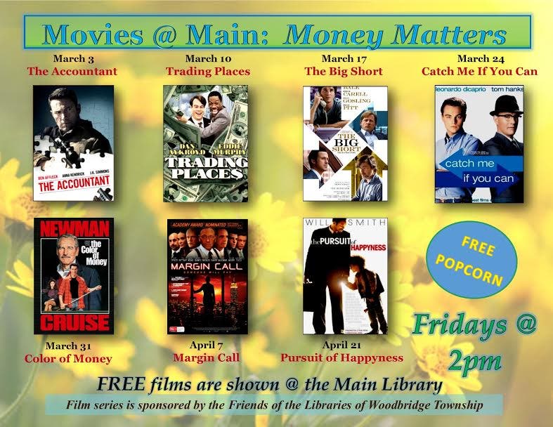 WOODBRIDGE, NJ - This Friday, March 3 the Woodbridge Main Library will begin a Spring Film Series. The movies will be shown each Friday at 2 p.m. and will highlight financial issues.
