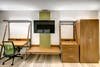 The hotel common areas and rooms were designed with guests in mind. The new look is striking, but the effect goes beyond aesthetics to improve the guest experience. Guests love the ambient backlighting, the wall-mounted swivel HDTVs, and the furnishings that make innovative use of space to decrease clutter and increase easy access to technology. And, as always, guests adore the complimentary hot Express Start™ breakfast bar, featuring a one-touch pancake machine and more.