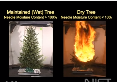 This video illustrates the dramatic affects of fire when it ignites a maintained (wet) cut Christmas tree versus a dry tree.
