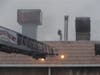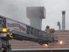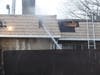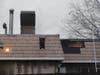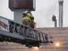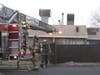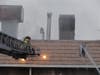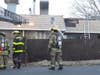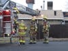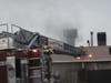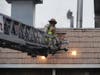 Firefighters used a ladder truck to reach the roof, from where billows of smoke were pouring. One fireman used a power saw to cut a hole in the mansard roof, while another firefighter fought the blaze through another opening.