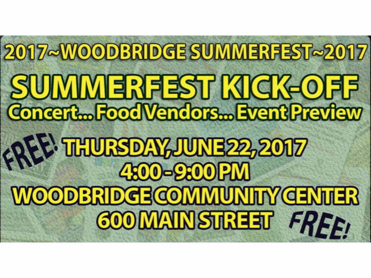 Woodbridge SummerFest will be held at the Woodbridge Community Center at 600 Main Street this evening. There will be food vendors and live music from Moonlight Mile, a Rolling Stones cover band, and The Benjamins. The Township will give info on the upcoming Fourth of July fireworks and the summer play, "West Side Story," which is running July 21, 22, 23, 28 and 29, as well as the 2017 Woodbridge farmers' market.