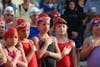 After a moment of silence in observance of 9/11, 140 kids and teens wearing swim caps bearing the American flag competed in the biathlon.